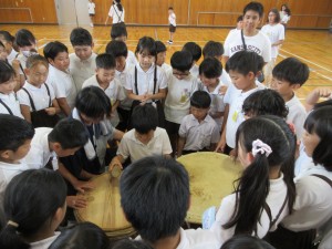 子どもたちは一生懸命に土生鼓おどりに取り組みました。