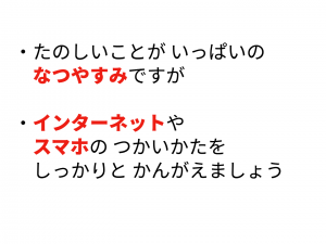 夏休み中のインターネットの使い方についての